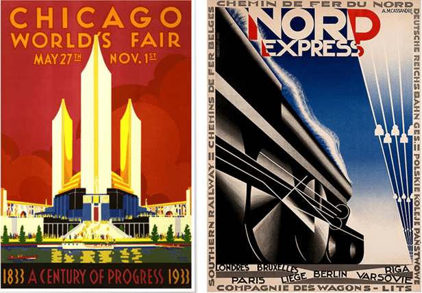 The poster art went from individual creations by famous artists to stunning images that could be rendered repeatedly and affordably. This was called the Golden Age of Poster Art, and it is from this era that we take much of our inspiration.