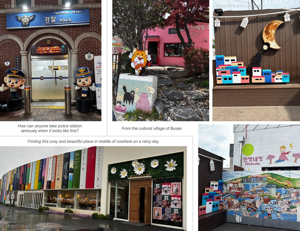 I always felt that designs with real-time imagery are better at evoking emotions, but after visiting South Korea I realized how bold colors, illustrations and cute designs make one feel good and happy. From their designs to experiences, one could feel the people first approach (don’t even get me started on the LED lights embedded pavements at crosswalks). It made me feel how the design inspiration I was collecting from other countries might not be relevant in the coming years, whereas South Korea is already operating in 2050.